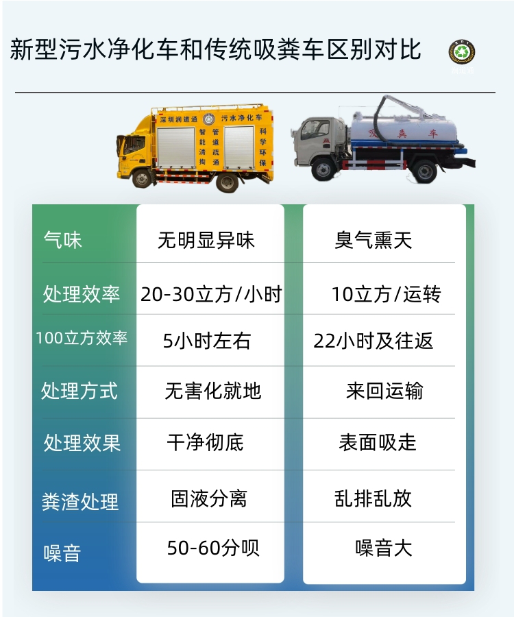 以上润道通环保高速路化粪池清理移动污水净化车对比传统吸粪车优势及5大方面。